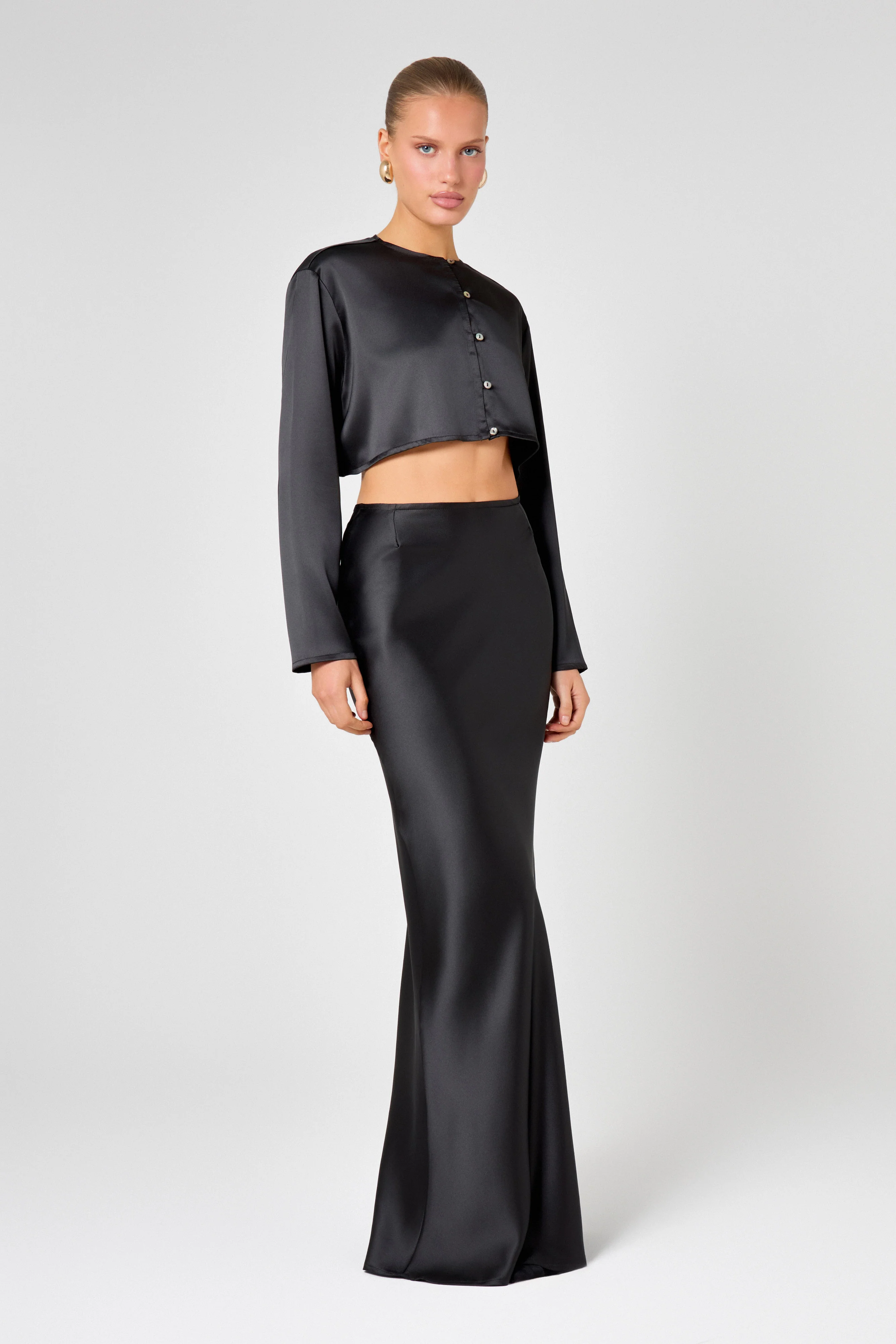 Black Satin Maxi Skirt